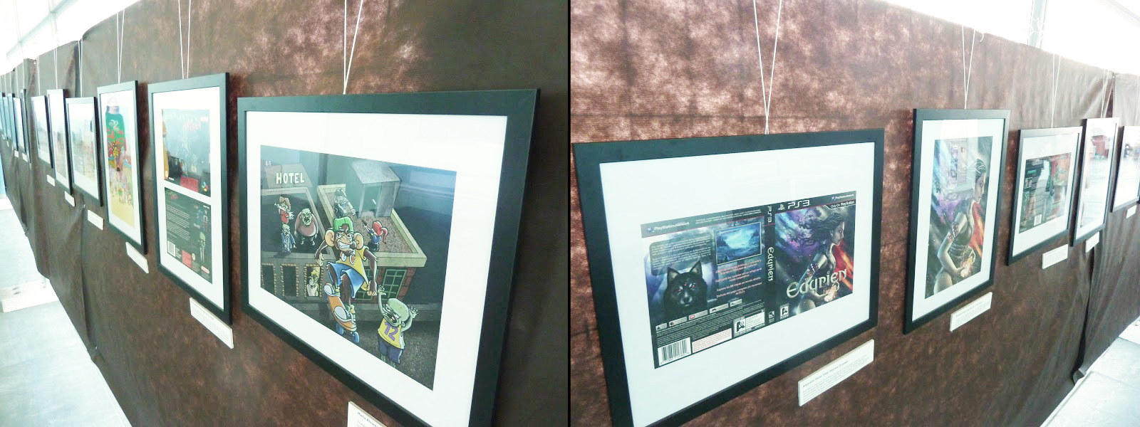 dibujando!! También tuvimos la ocasión de presentar nuestra exposición "Los Píxeles Perdidos". Creamos una serie de portadas de videojuegos ficticios para plataformas reales, intentando adaptar nuestro estilo al formato de cada consola. Para decorar un poco nuestro stand decidimos montar las carátulas que habíamos creado sobre cajas originales de videojuegos, lo más divertido fue que muchos se pensaron que eran reales y que estaban a la venta xD Por otra parte, pudimos dar una charla sobre la actividad del colectivo, si queréis verla está colgada en
